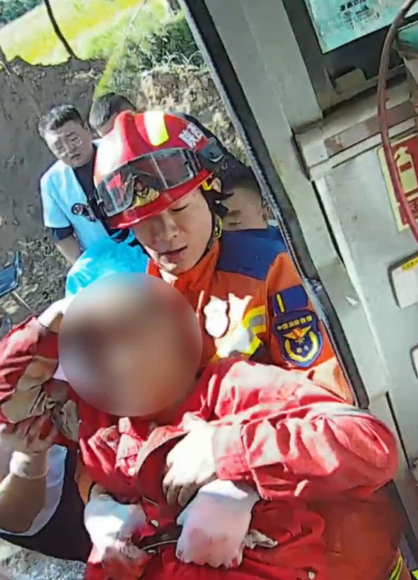 在救援過(guò)程中,消防人員憑借著精湛的技藝和默契的配合,克服重重困難,分秒必爭(zhēng)地為被困司機(jī)爭(zhēng)取生機(jī)。經(jīng)過(guò)一番緊張而有序的救援操作,終于成功將被困司機(jī)移出駕駛室,并小心翼翼地將其抬上擔(dān)架,交由現(xiàn)場(chǎng)等候的 120 醫(yī)護(hù)人員送往醫(yī)院進(jìn)行進(jìn)一步救治。