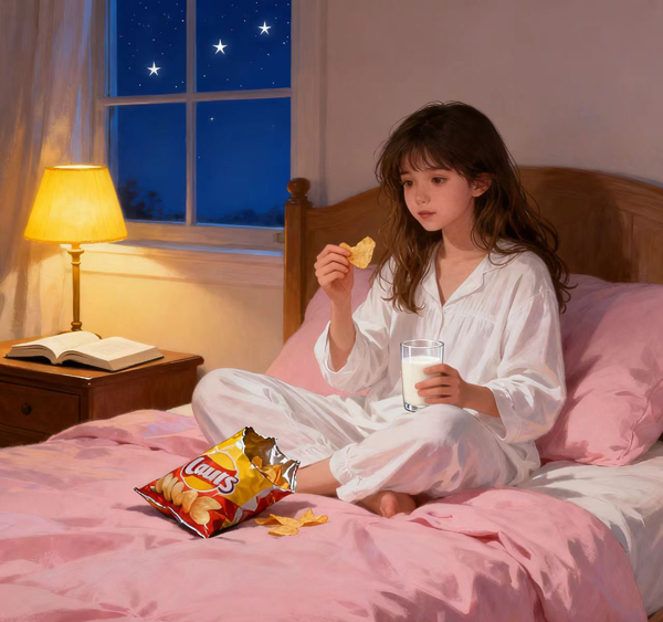 當(dāng)晚餐所吃的食物基本被消化后,人體在睡前容易感到饑餓。如果此時進食,不久后便要入睡,未被消耗的熱量就容易囤積在身體里,造成肥胖。像一些小伙伴,晚上追劇、玩手機游戲時,常常會忍不住吃些堅果、薯片、巧克力之類的零食,或者喝點奶茶、可樂等含糖飲料,這些高熱量食物在睡前攝入,可就很難被消耗掉了。