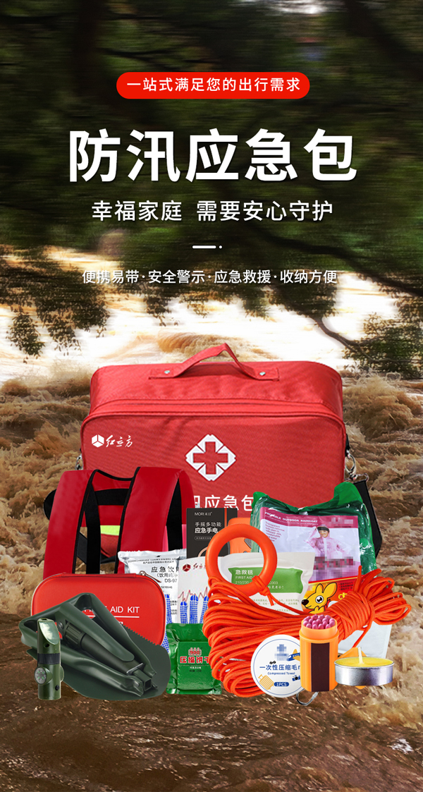大暴雨極端天氣,配備防汛應(yīng)急包很關(guān)鍵。一個(gè)完整的防汛應(yīng)急包應(yīng)包括以下物品: