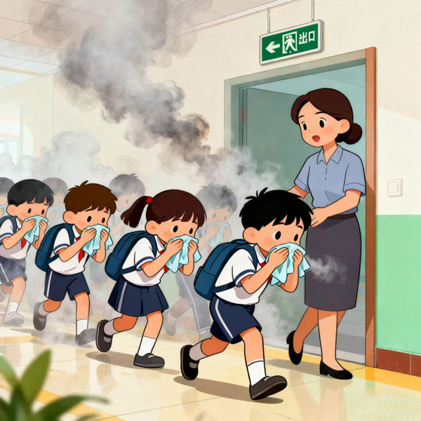 2. 快速逃生:選擇最近的安全出口,切勿乘坐電梯,用濕毛巾捂住口鼻,低姿勢(shì)前進(jìn)。