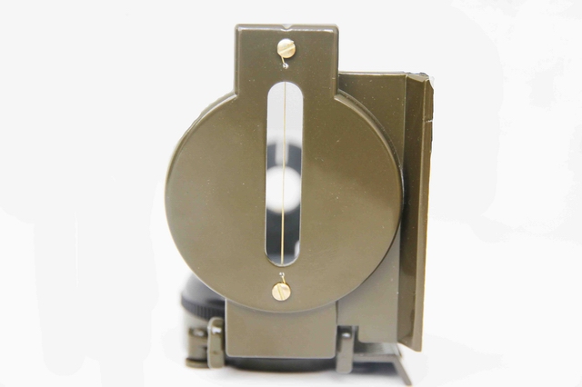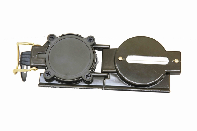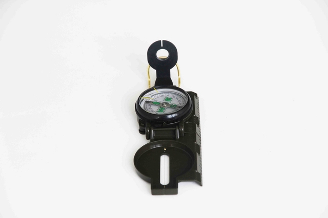 1.測方位角:展開指北針,轉(zhuǎn)動方位框使方位玻璃上的刻度線與方向指標(biāo)相對正,將平視鏡斜放(45°)單眼通過準(zhǔn)星瞄向目標(biāo),從平視鏡反射看到磁針N極所對反字表牌上方位分劃,既可讀出目標(biāo)方位角,然后用右手轉(zhuǎn)動方位框使方位玻璃上的刻度線與磁針N極對準(zhǔn),此時方向指標(biāo)與方位玻璃刻度線所夾之角即為目標(biāo)方位角(按順時針方向計算)。打開指北針,標(biāo)定好地圖(測距時可不標(biāo)定地圖),在圖上基準(zhǔn)點(diǎn)處插一扎針,轉(zhuǎn)動指北針,使側(cè)尺邊切于目標(biāo)點(diǎn),即可判讀出基準(zhǔn)點(diǎn)至目標(biāo)點(diǎn)的方位角。